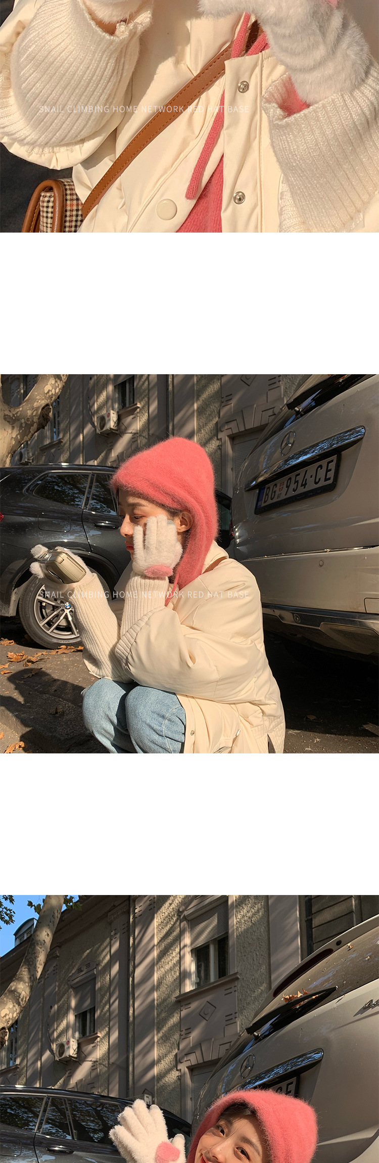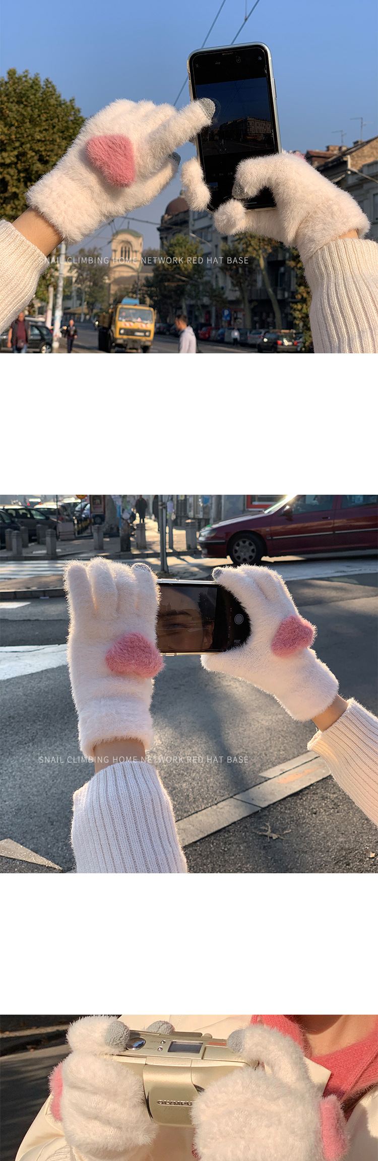 少女心针织蝴蝶结秋冬保暖手套露指触屏玩手机含兔毛韩国新款女士
