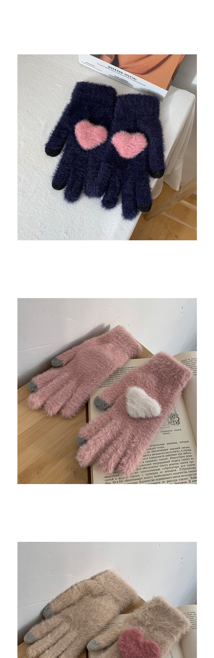 ぬいぐるみの柔らかいモチモチは手袋の女性の冬のinsを分けて、長いタイプの厚い保温の学生を配合して、指を露出してタッチパネルができます。