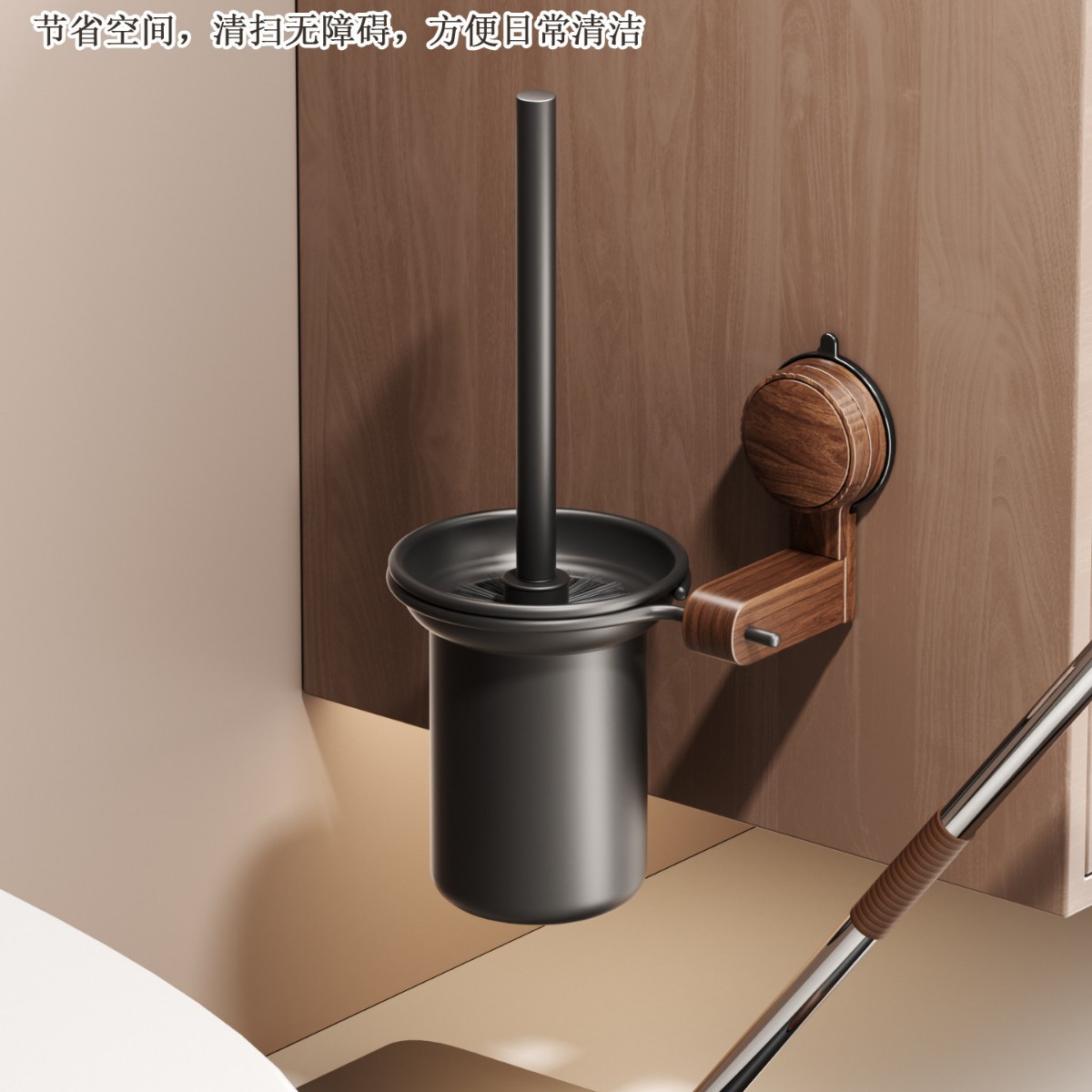 胡桃木吸盘马桶刷免打孔卫生间家用无死角厕所刷子壁挂收纳置物架