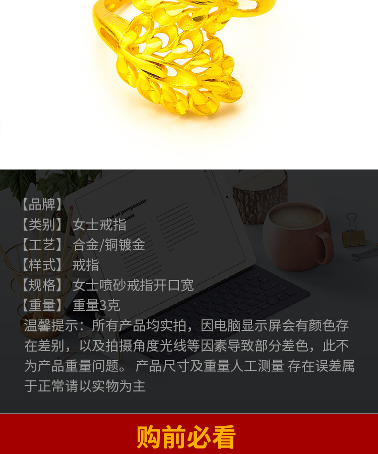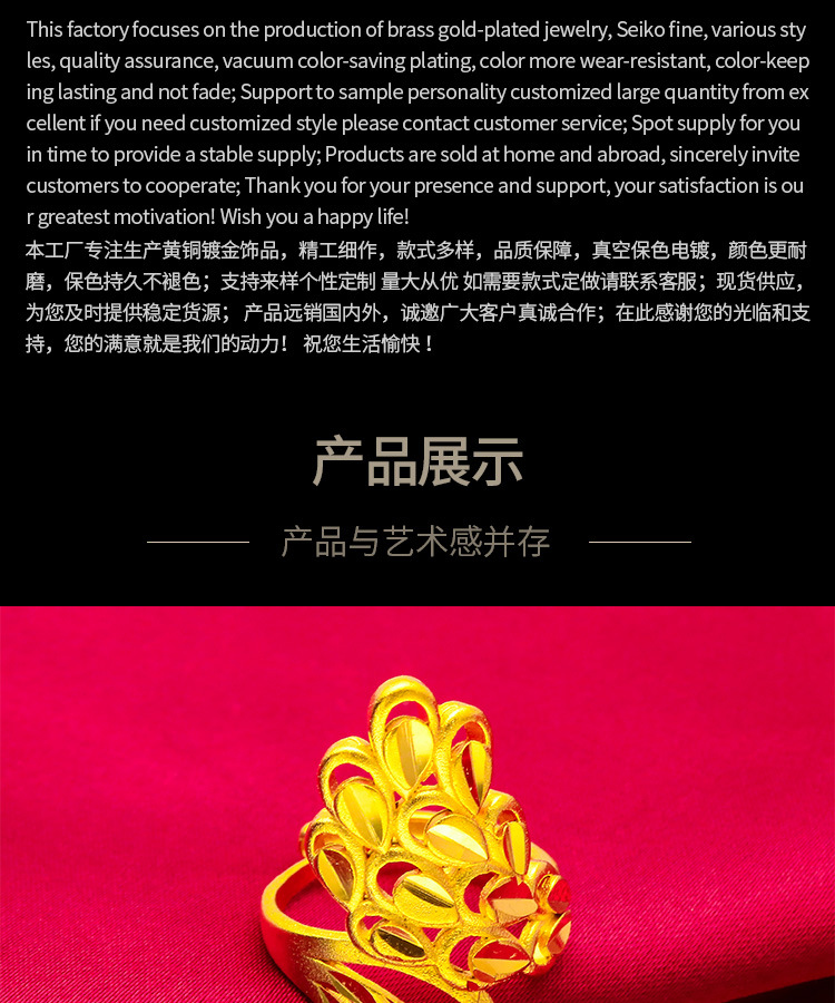 2021新型生放送メッキ24kシミュレーション金ジュエリー女性バラ指輪ベトナム沙金指輪卸売り
