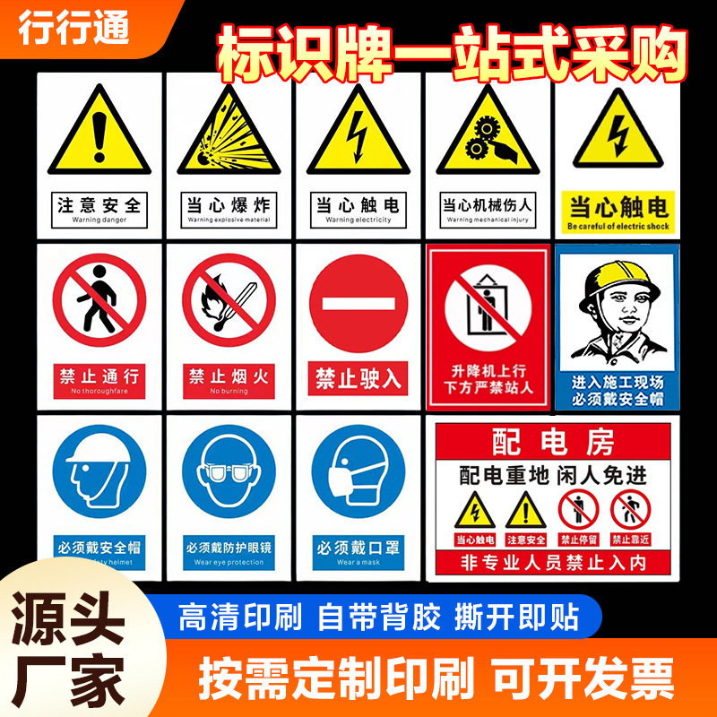 安全标识牌标识警示牌禁止吸烟当心爆炸当心触电疏散图标识贴标示
