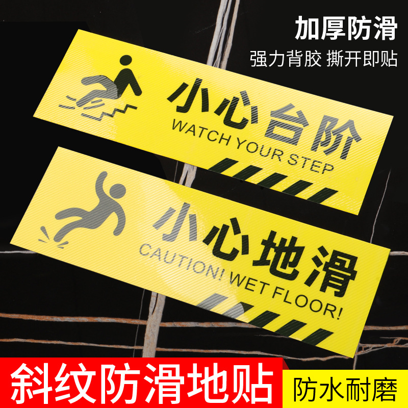 小心地滑提示贴商场楼梯口小心台阶pvc斜纹耐磨防滑标识警示地贴