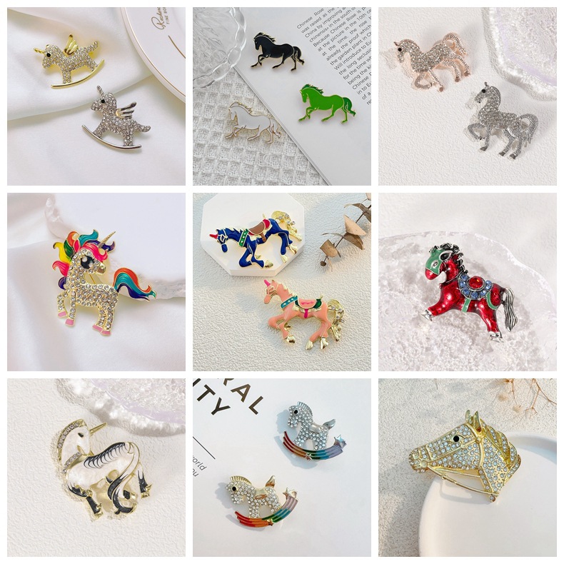 新款生肖小马小众动物卡通胸针独角兽配饰包包女百搭别针胸花批发