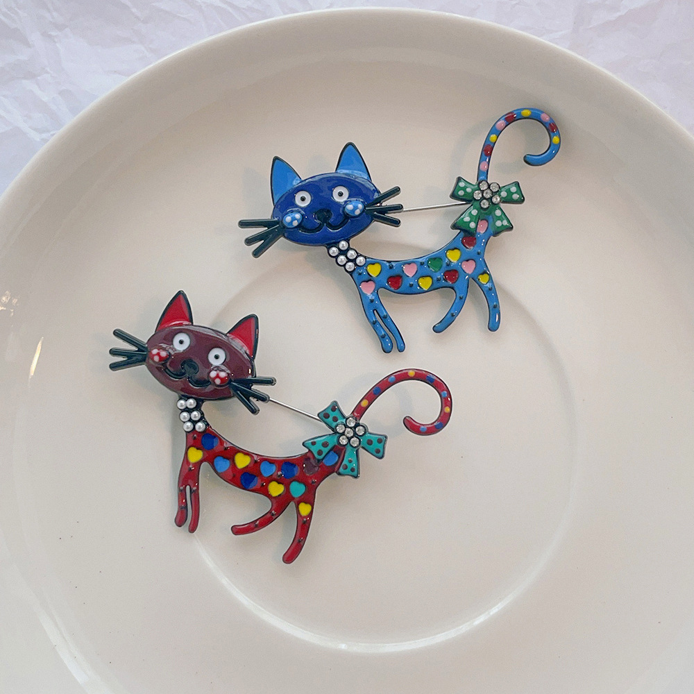 韩版跨境卡通滴油小猫胸针女高级小众感别针批发高档动物胸花服饰