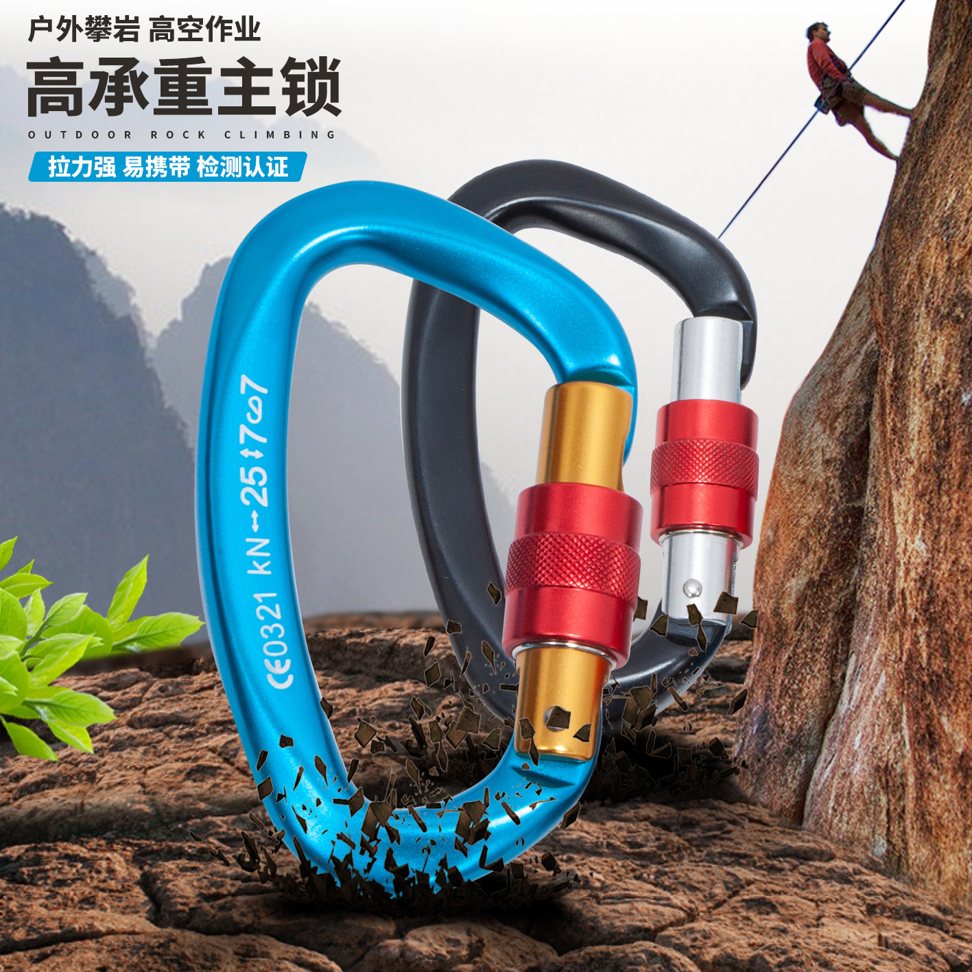 豪博睿クライミング主鎖登山フック屋外快掛登頂荷重フック速降装備安全d型ロック