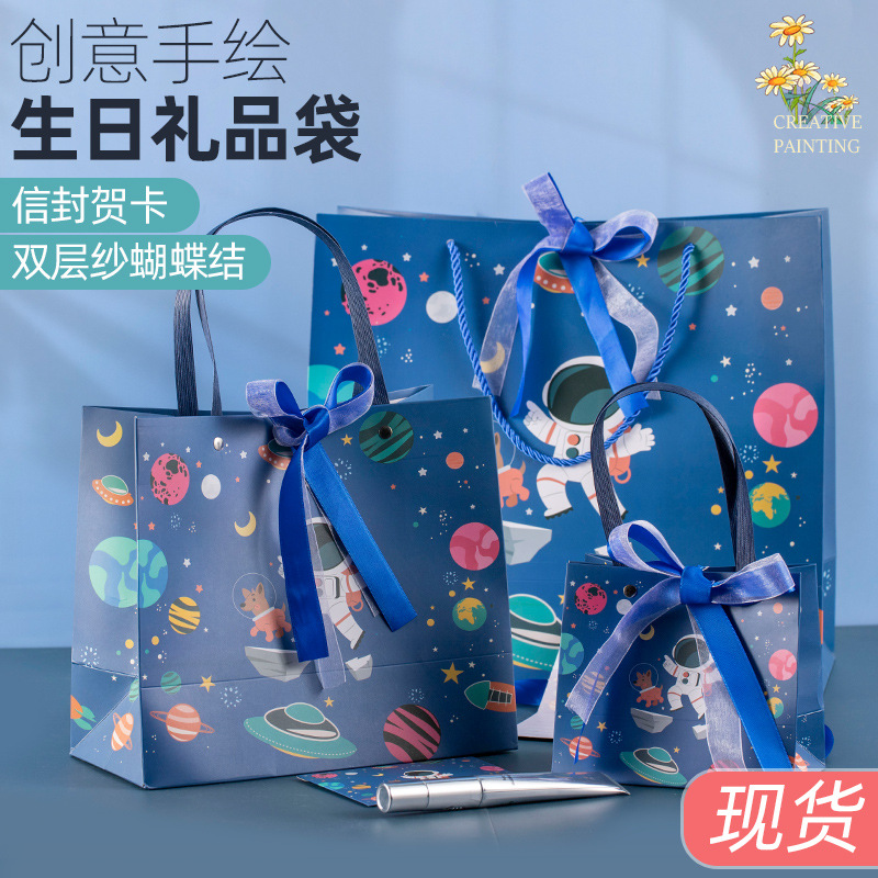 宇宙飛行士漫画ギフトバッグ幼稚園プレゼントバッグ六一子供の日手提げ袋包装誕生日紙袋