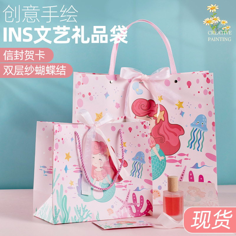 マーメイドギフトバッグ幼稚園の子供たちの誕生日プレゼントバッグ大容量手提げ袋かわいいアニメお土産