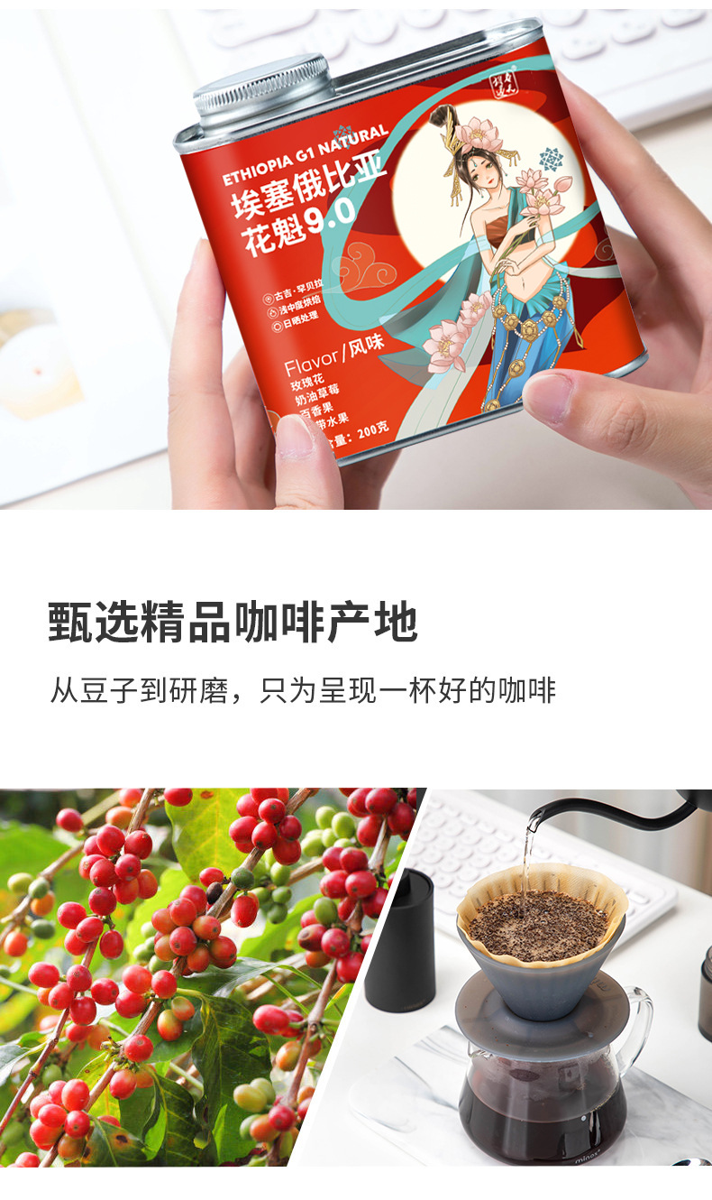 イェガ雪菲エチオピア花魁9.0日干しアラビカコーヒーハンドコーヒー豆新鮮焙煎