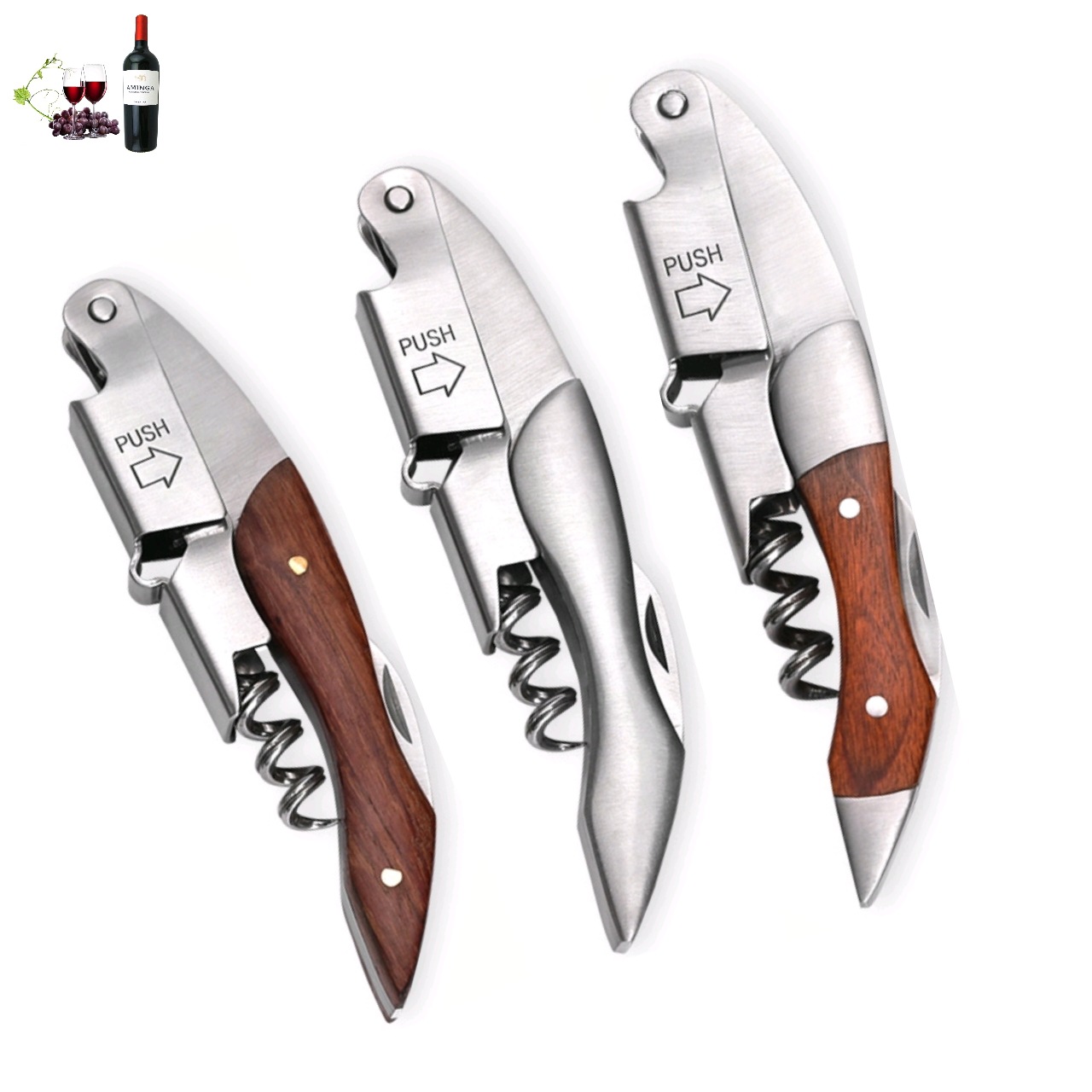 メーカー直販ステンレスワイン栓抜き器創意多機能木製ワインビール栓抜き器卸売り