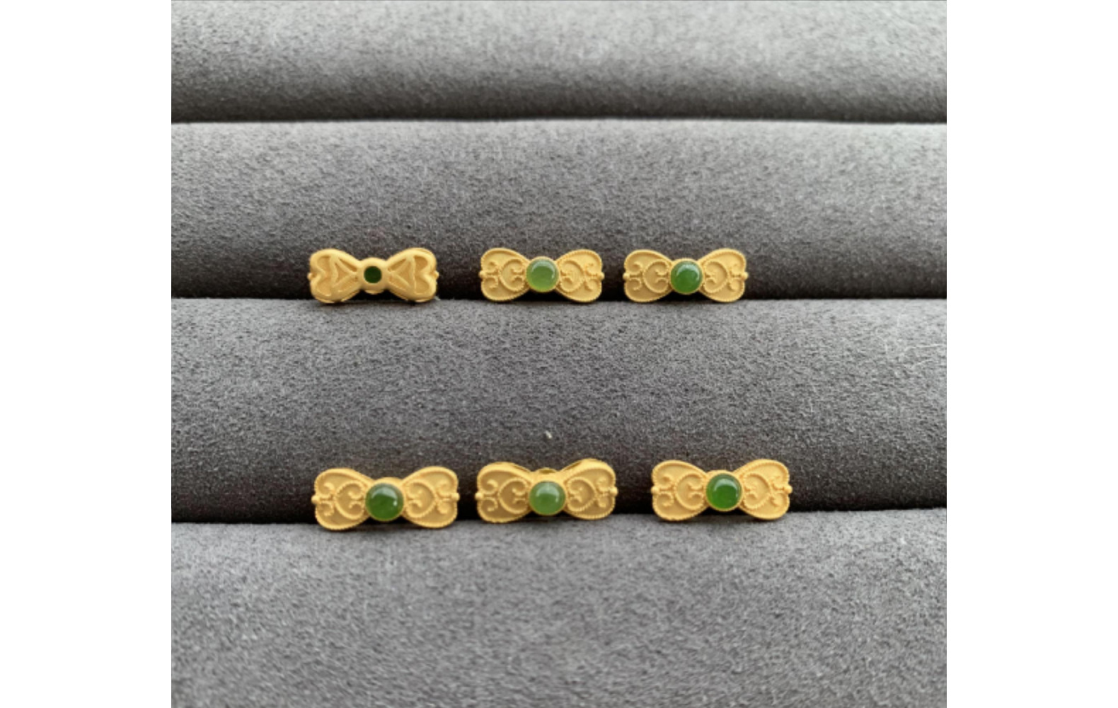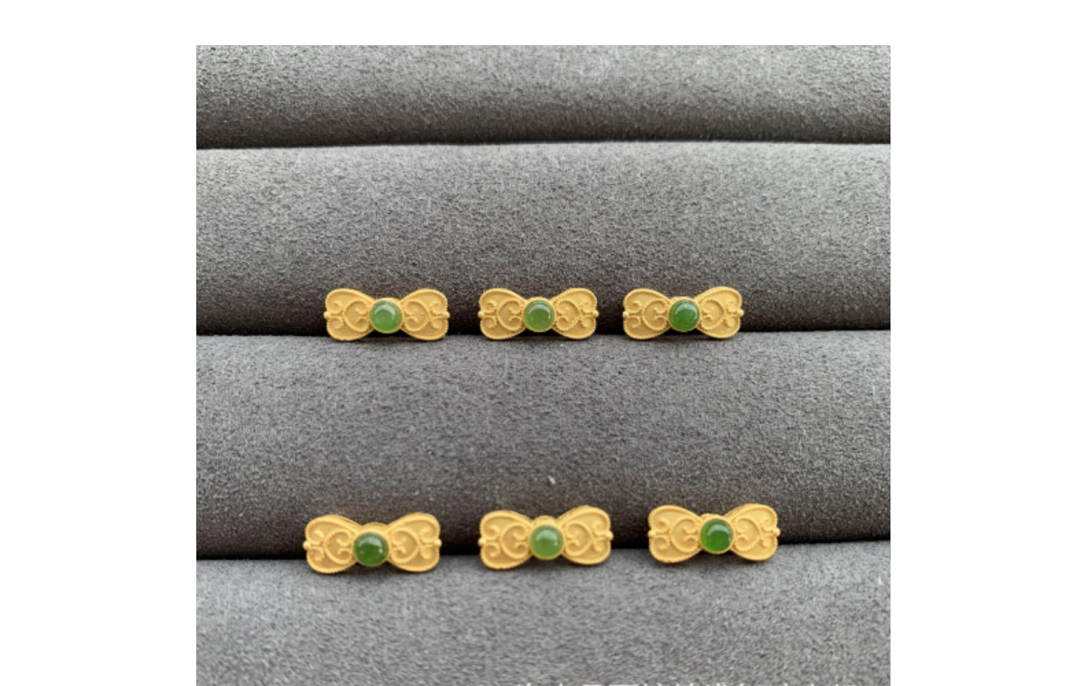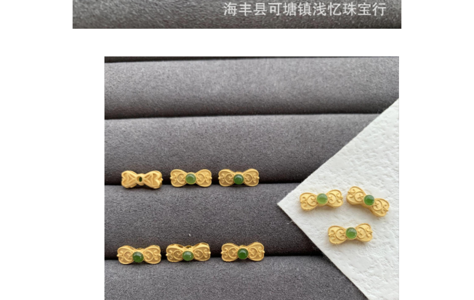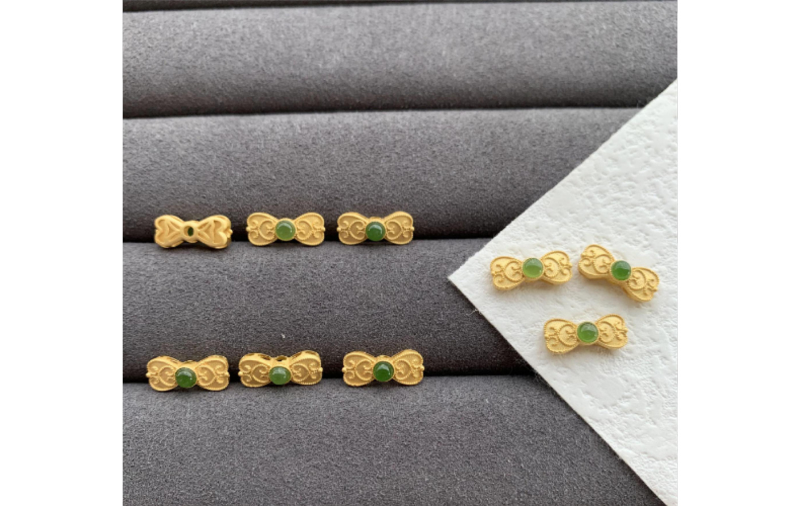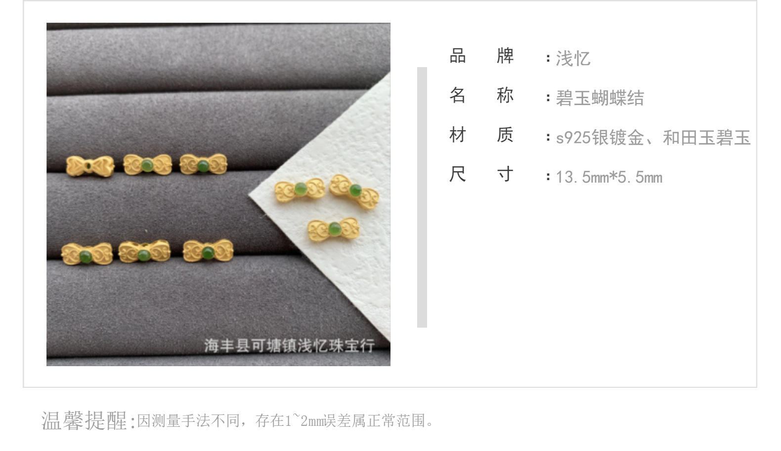 天然和田玉碧玉小部品s925銀象眼碧玉蝶結び通孔手作りdiy部品卸売り