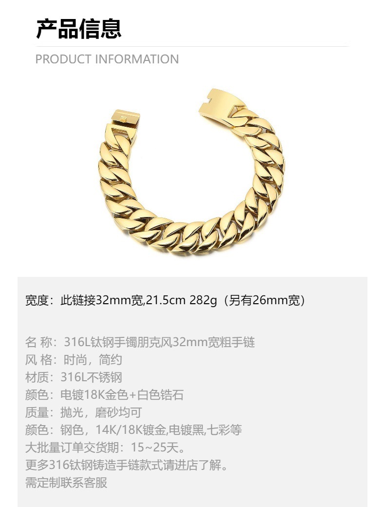 欧米で人気のアマゾンwish热い贩売メンズブレスレット316lチタン钢ブレスレットパンク风32mm幅太いブレスレット