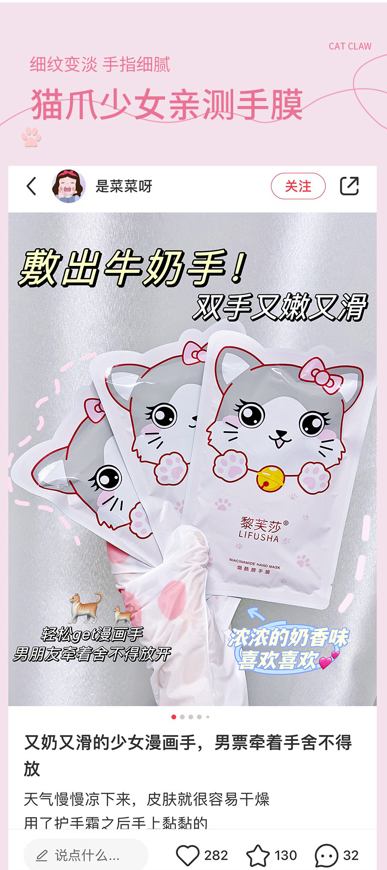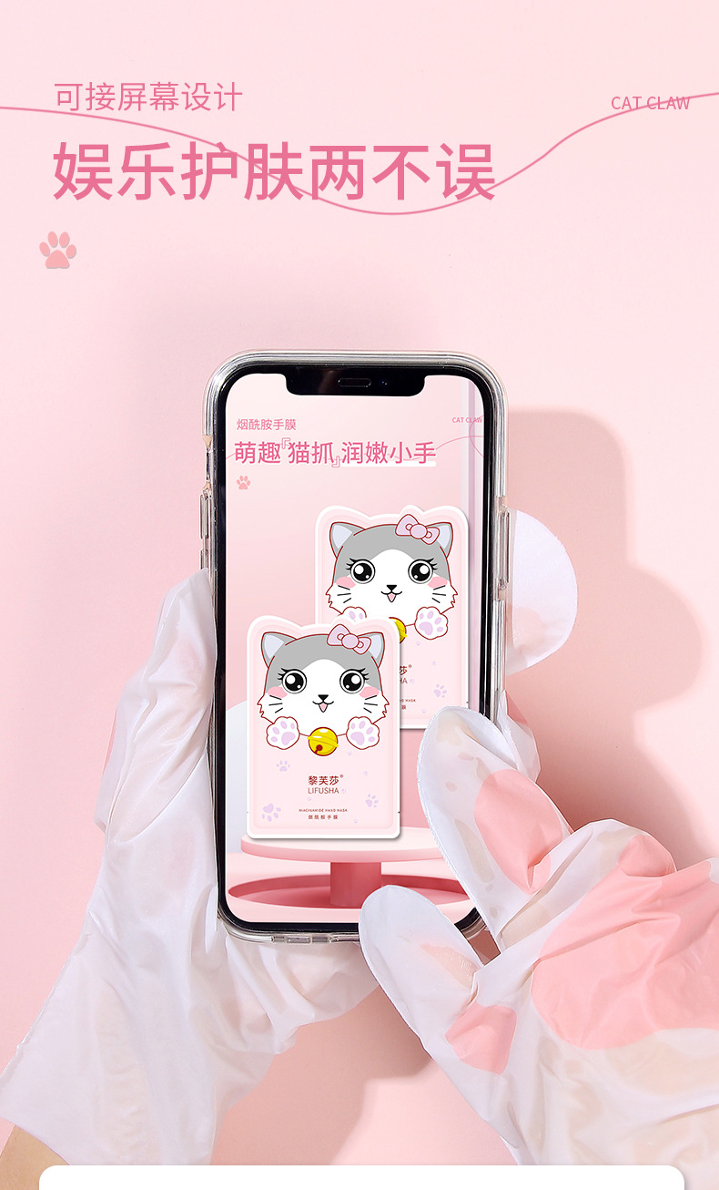 爆発的な黎芙莎ニコチン酸アミド手膜柔らかい両手保湿補水潤い肌猫爪手膜卸売り