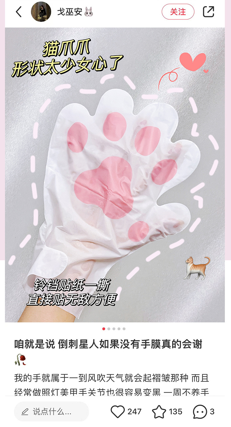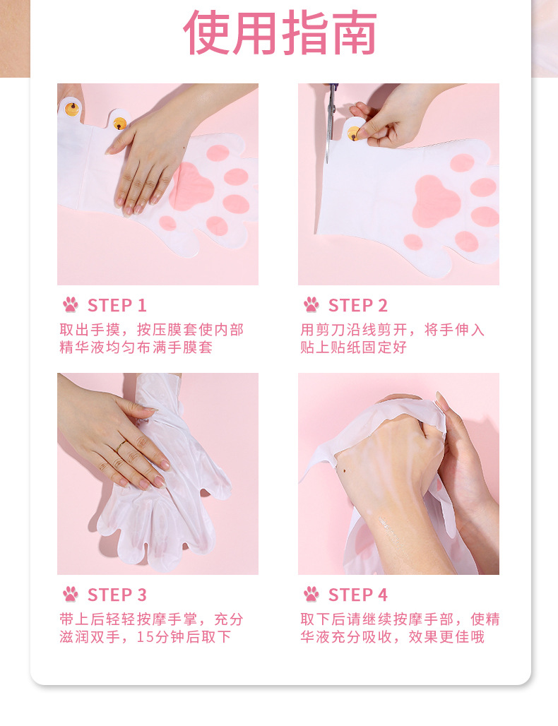 ナイアシンアミド猫の爪ハンドマスク、保湿、滑らか、手のしわの薄め、ケアグローブ、美白、手荒れの改善