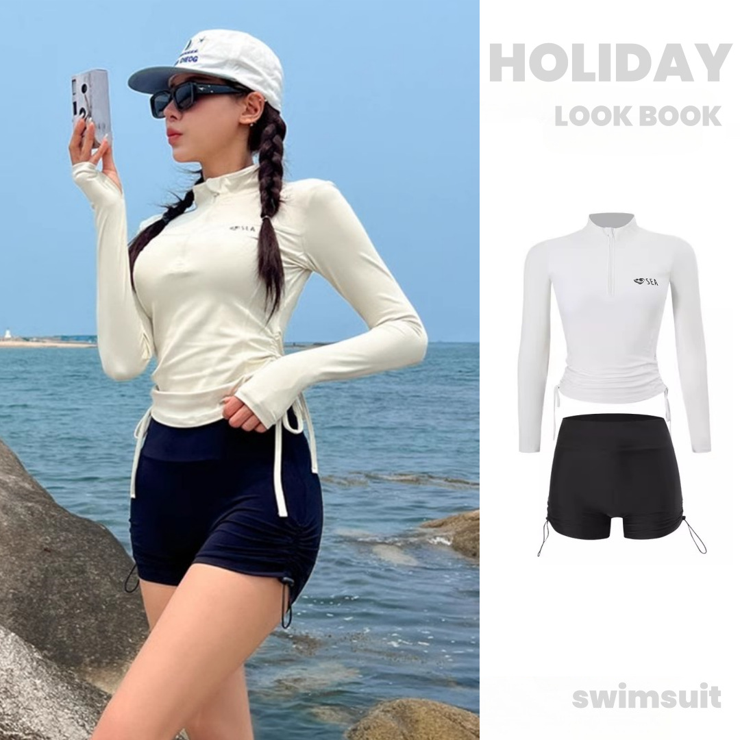 2025新型水着の女性は3つのセットの長袖が痩せています。