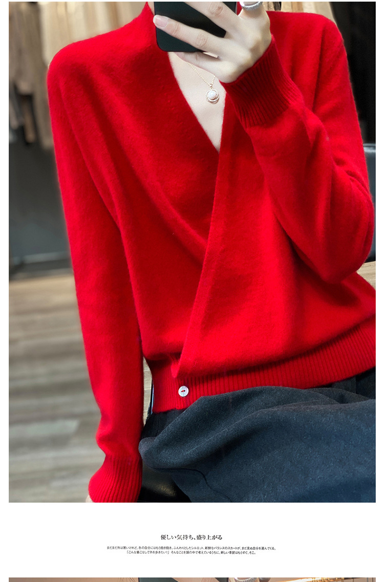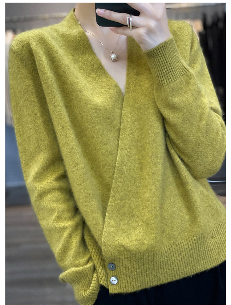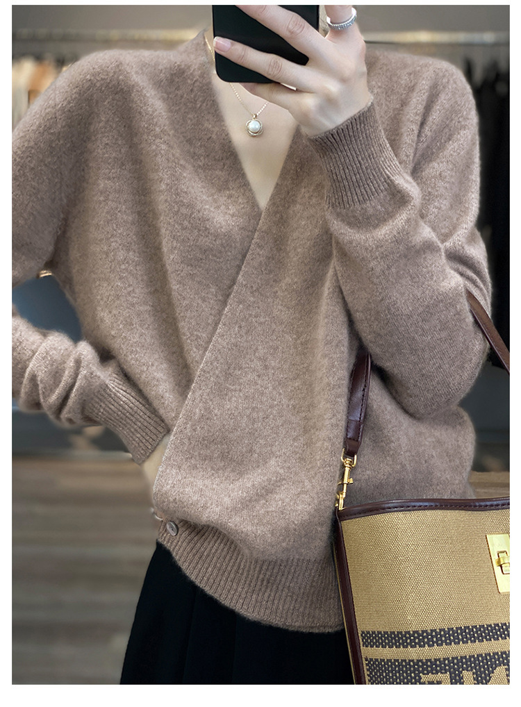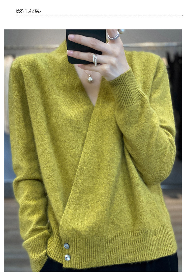100純ウール小vネック長袖カーディガン2025春秋新作ニットセーターソフトモチモチ気質コートブーム