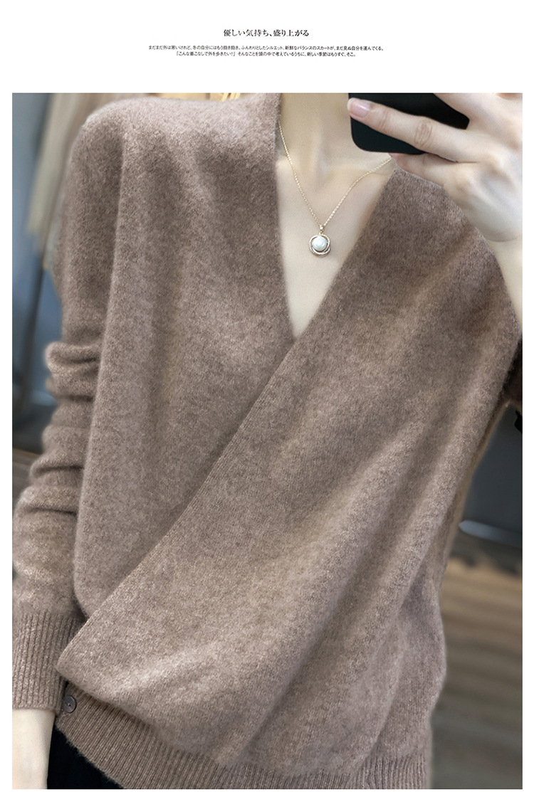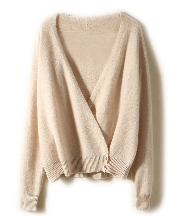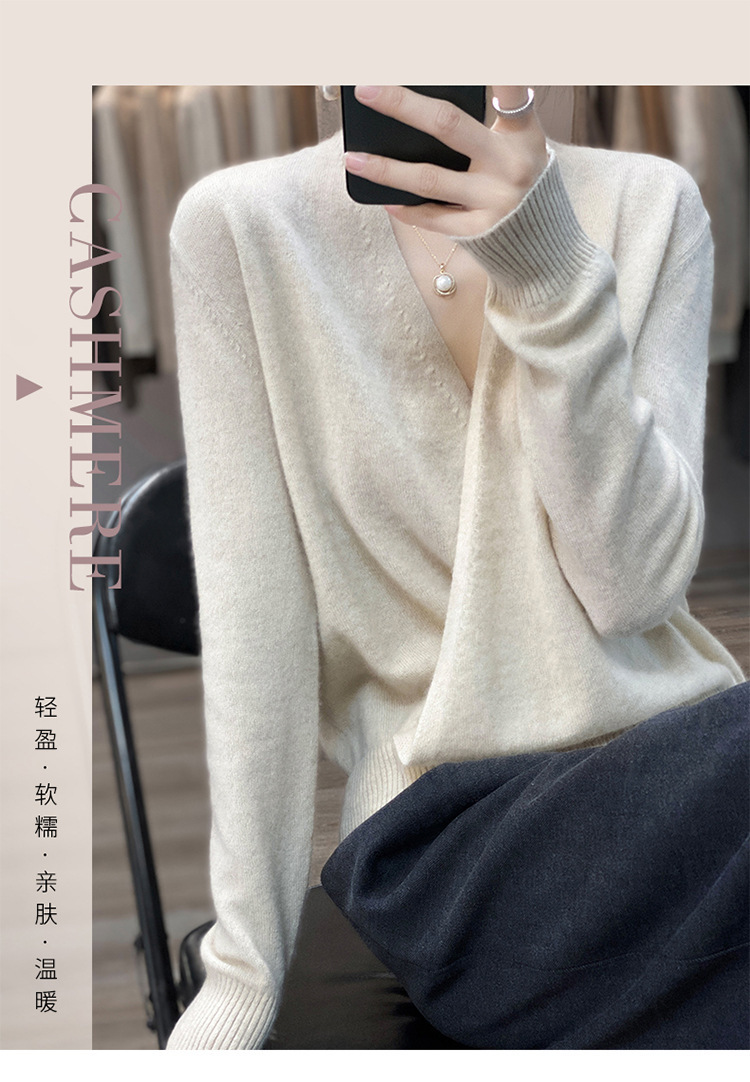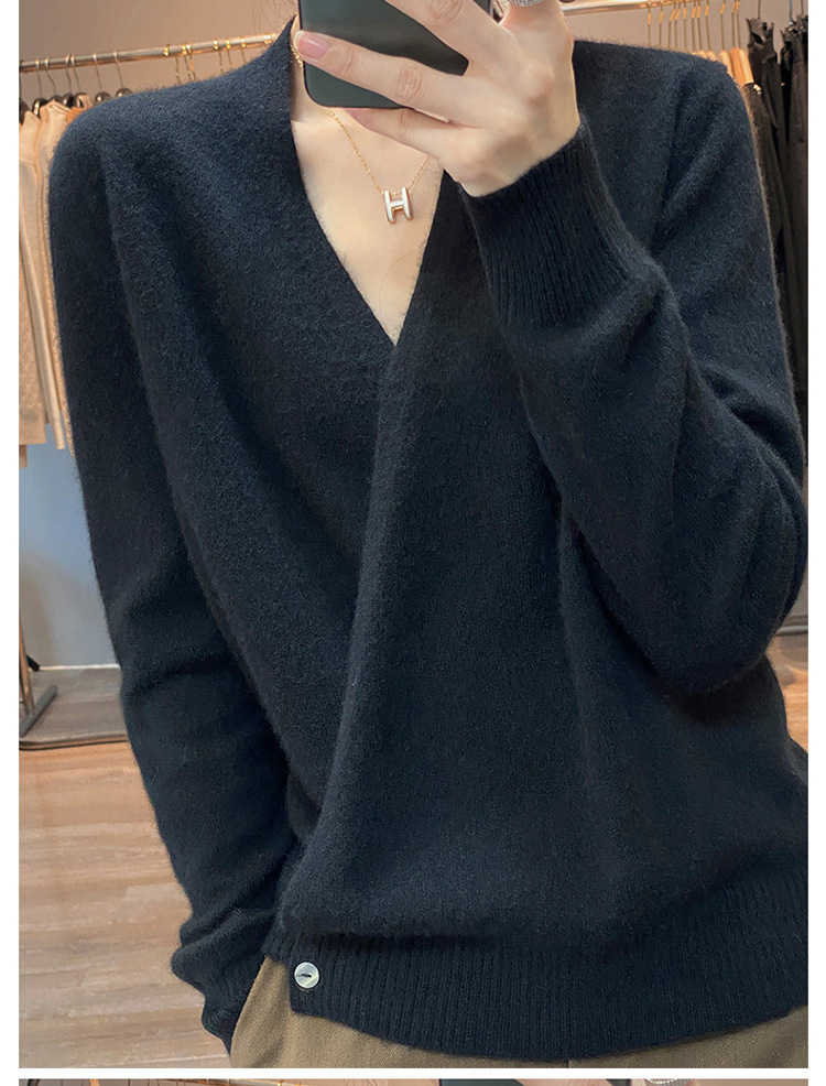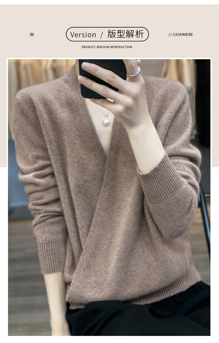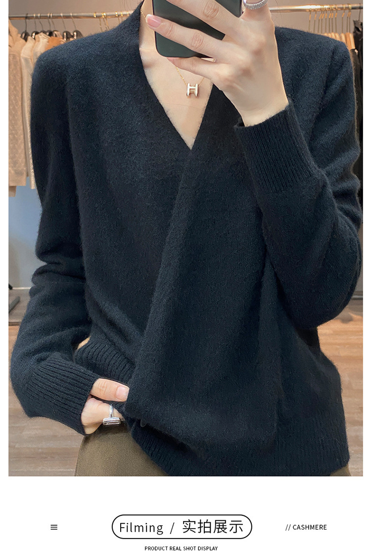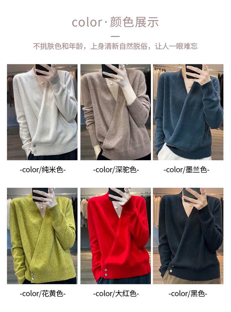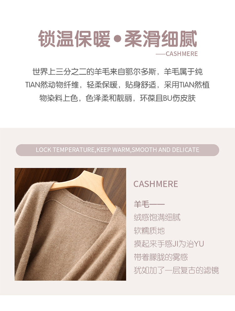 2025秋冬新款山羊绒开衫女士纯色V领长袖针织衫外套上衣宽松毛衣