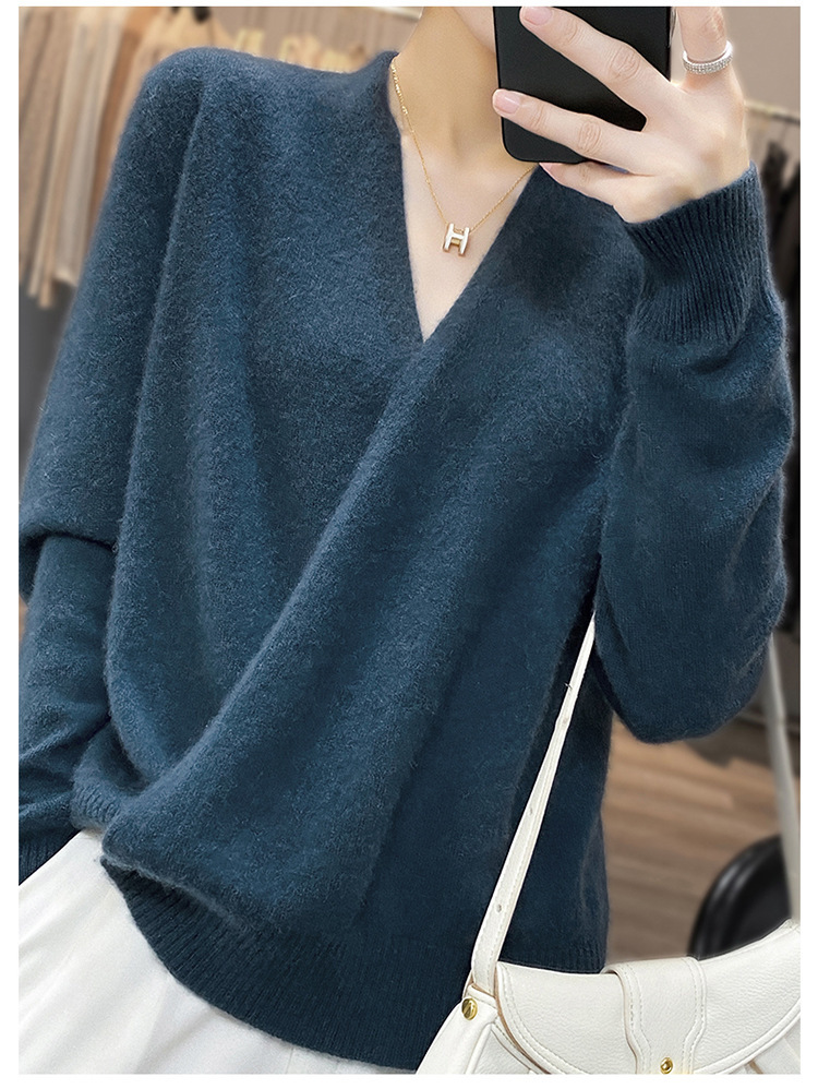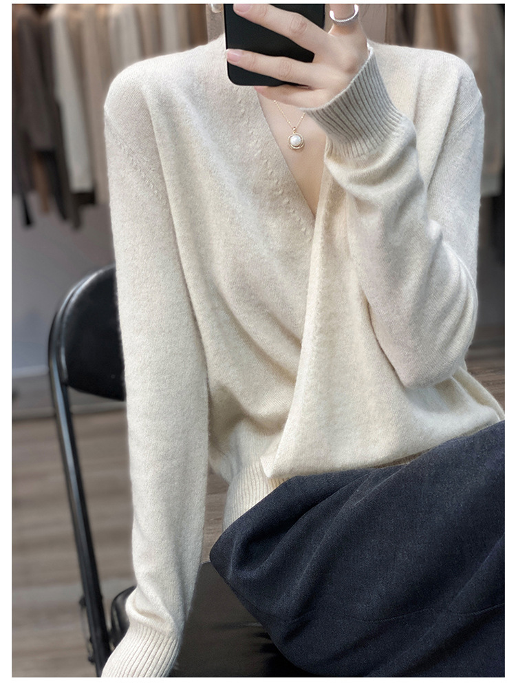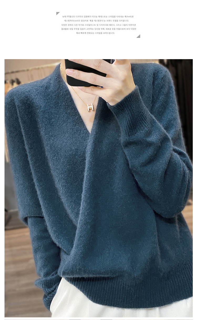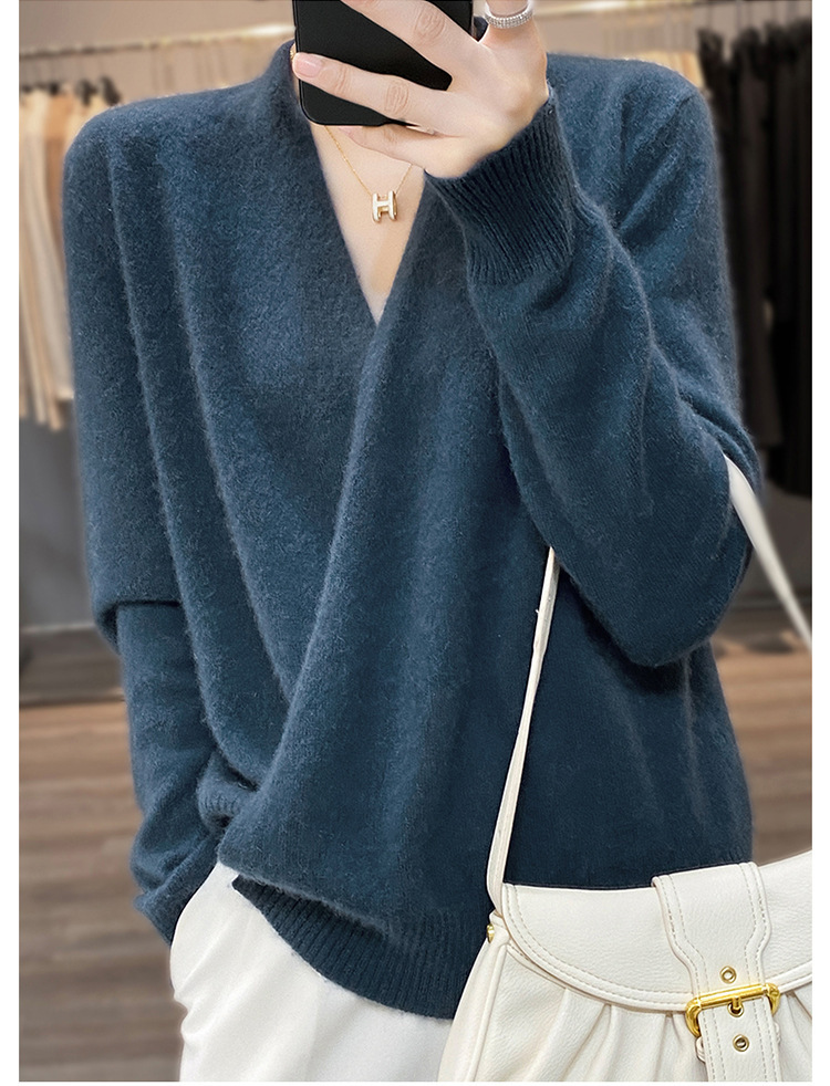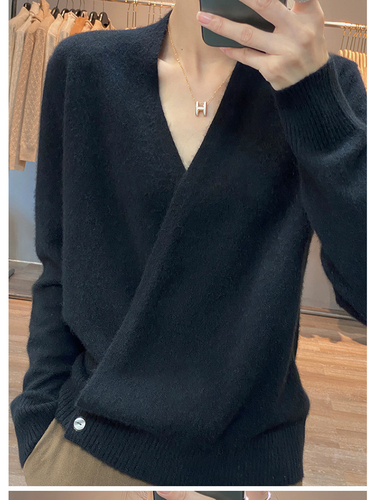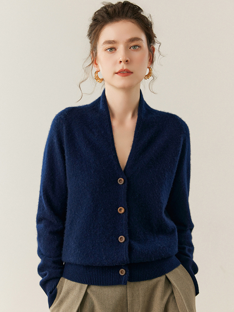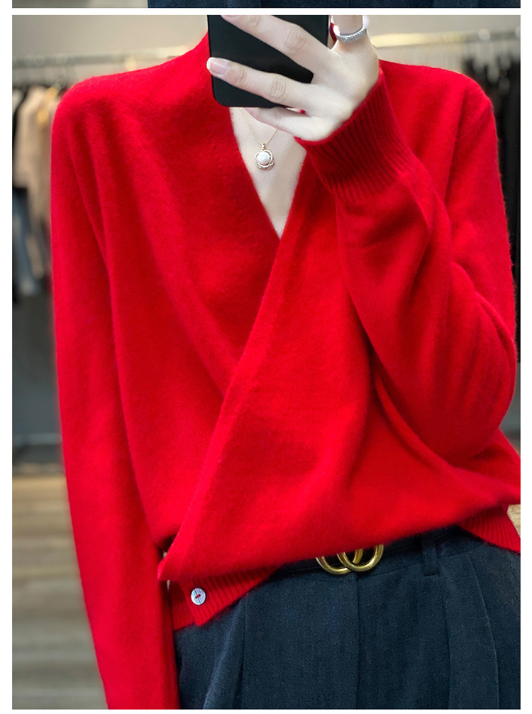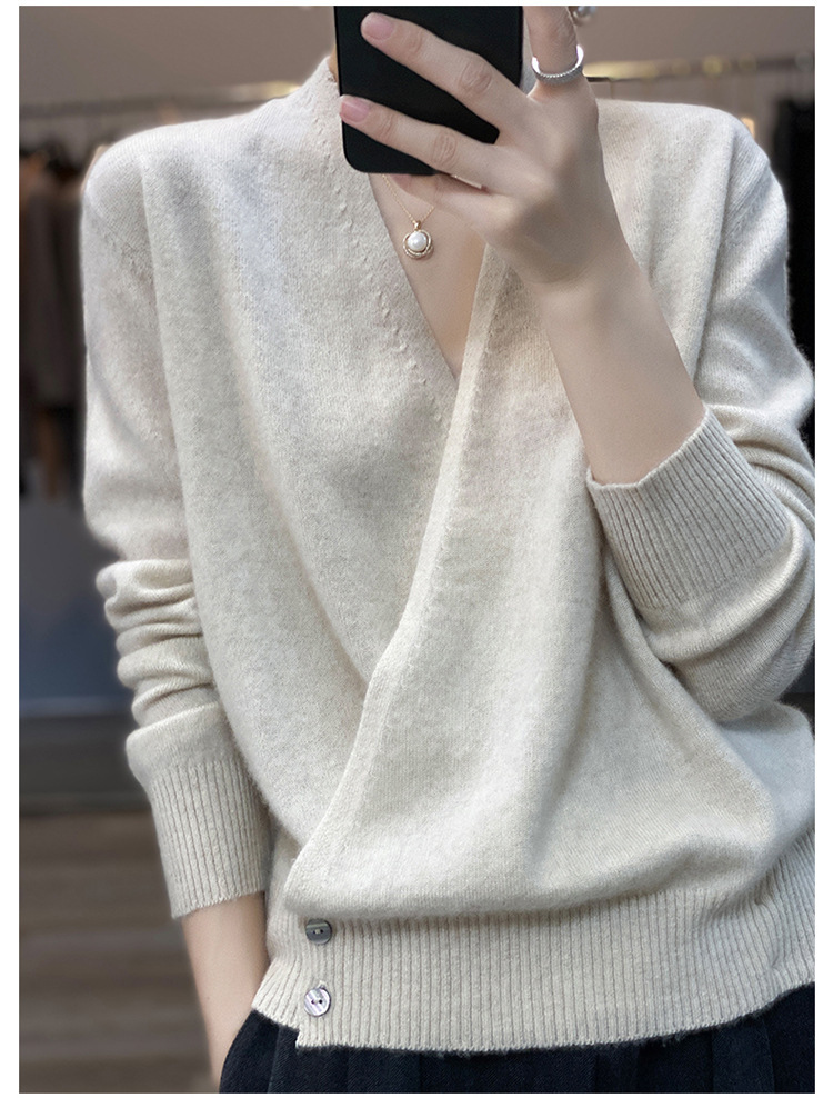 2025秋冬新款山羊绒开衫女士纯色V领长袖针织衫外套上衣宽松毛衣