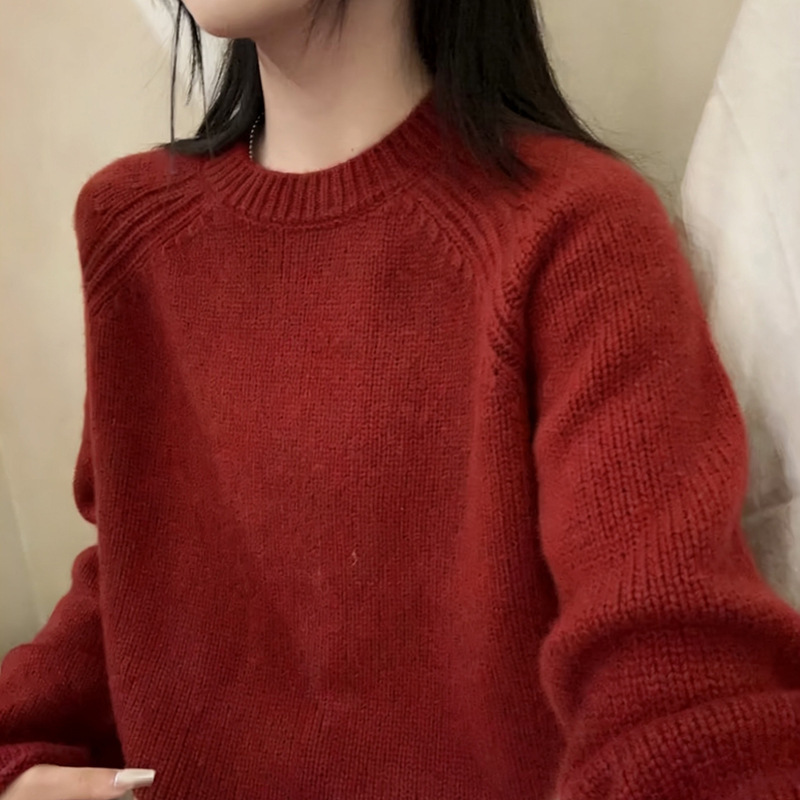 新年红卷边纯羊毛衫女欧货秋冬本命年针织加厚软糯打底毛衣