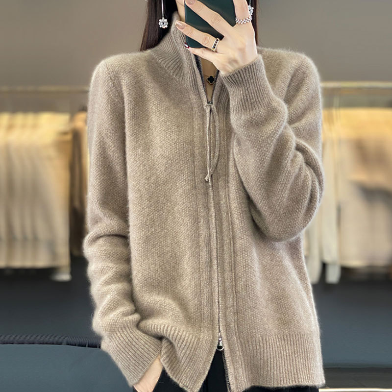 【メーカー直供】立襟メリヤスカーディガンの女性秋冬純色がゆったりしています。
