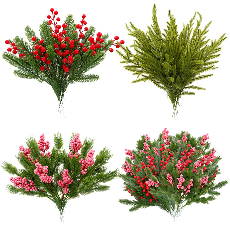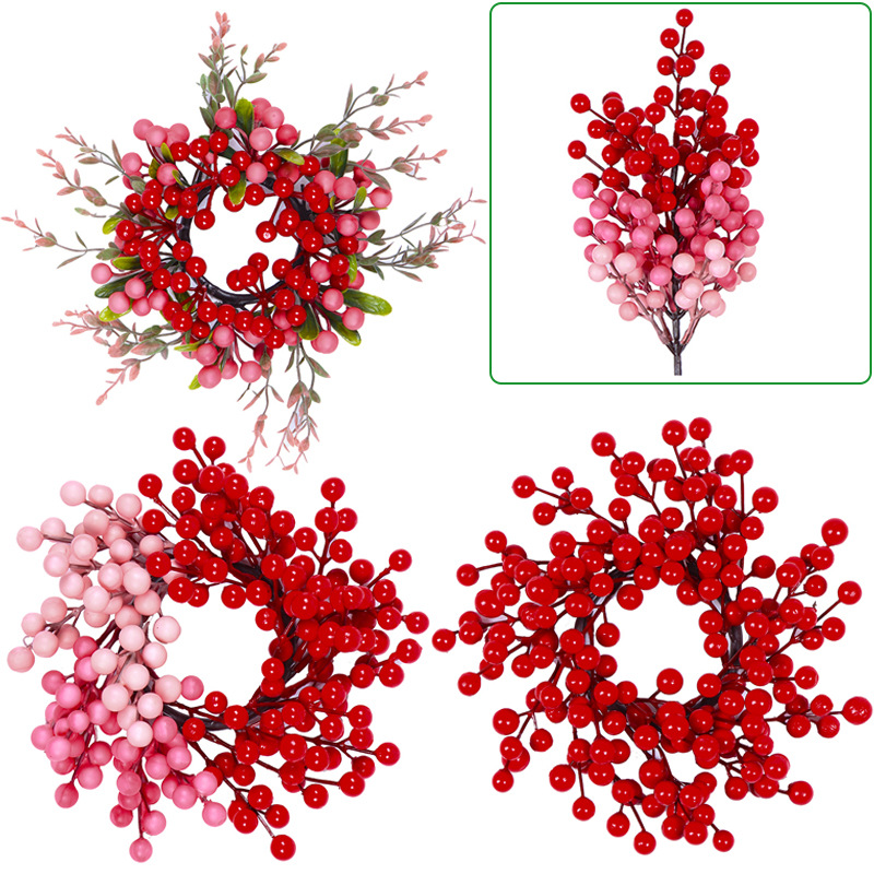 アマゾンクロスボーダークリスマス人工松針枝赤ベリーピンククリスマス冬青果DIYクリスマス装飾品