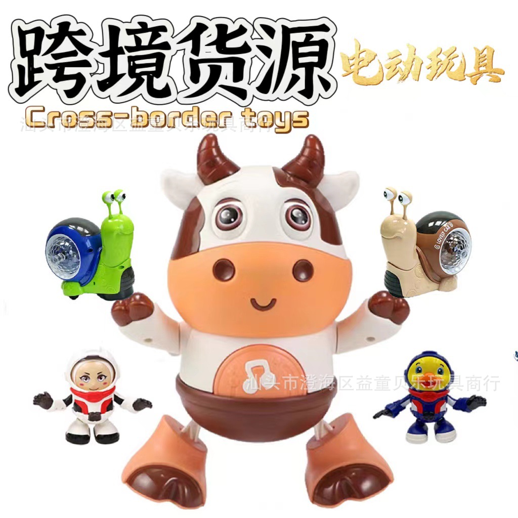 国境を越えたおもちゃの電動人形、かわいい子牛の形、音と光、揺れ歩き、子供向けおもちゃ工場からの直接配送