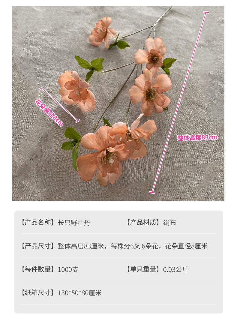 メーカー直販6頭芙蓉牡丹花結婚祝いホームDIY生け花絹花祝日布景花壁結婚祝い卸売り