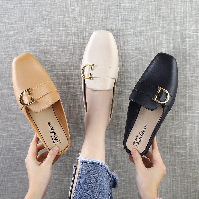 新商品の包頭スリッパの女性ファッションの半包はネットの赤い靴の韓国版の平底のレジャーの女性の涼しいミュラーの靴を着ます。