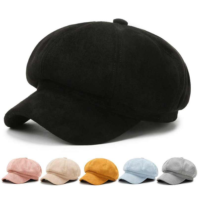 無地八角帽、万能ベレー帽、女性用秋冬韓国風ファッション画家風英国風帽子、鹿革ベルベット