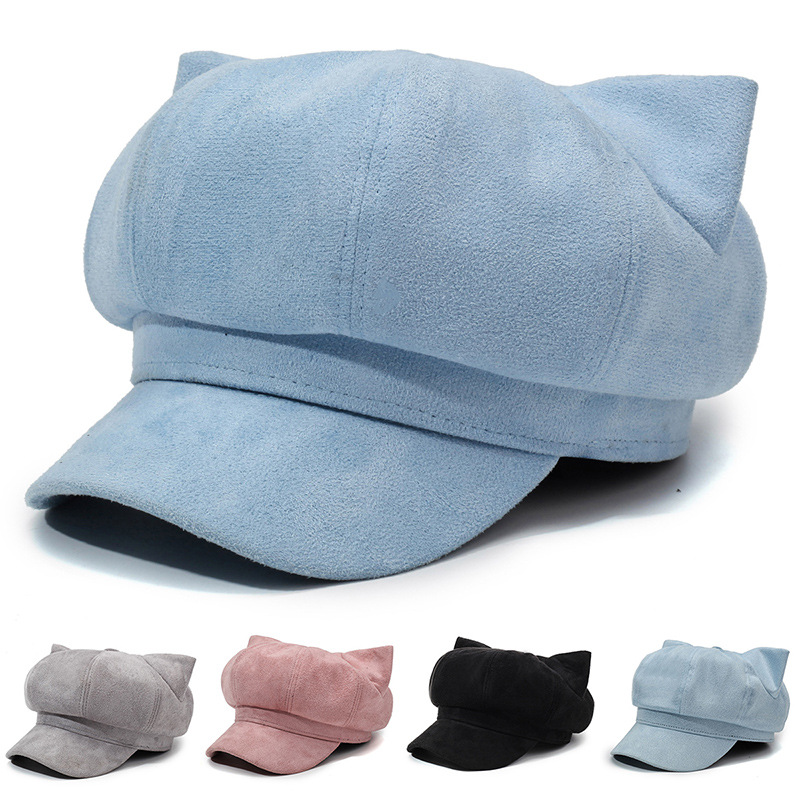 ins猫耳朵八角帽女秋冬贝雷帽韩版百搭英伦报童帽子网红款鸭舌帽