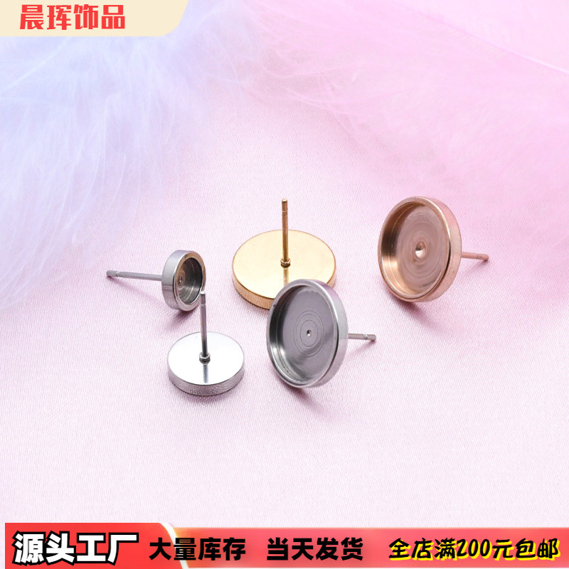 卸売ステンレス丸型イヤリングピンアクセサリー厚め宝石ホルダーDIYジュエリー猫目石装飾可能