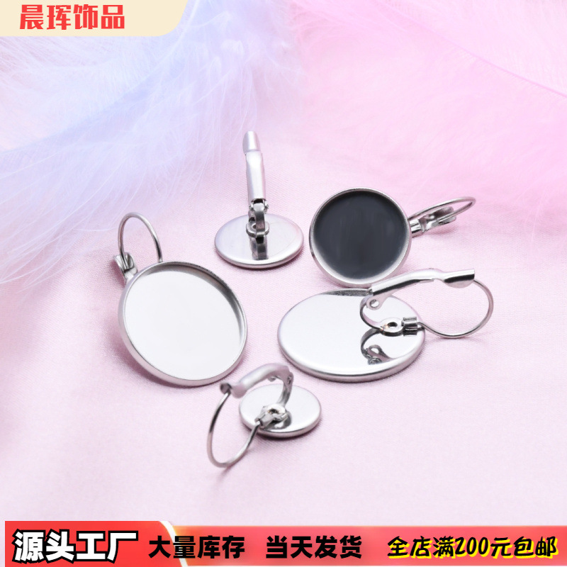 ステンレス製宝石台座付きフレンチイヤーフック、丸皿、DIYイヤリング材料、工場直送、越境販売