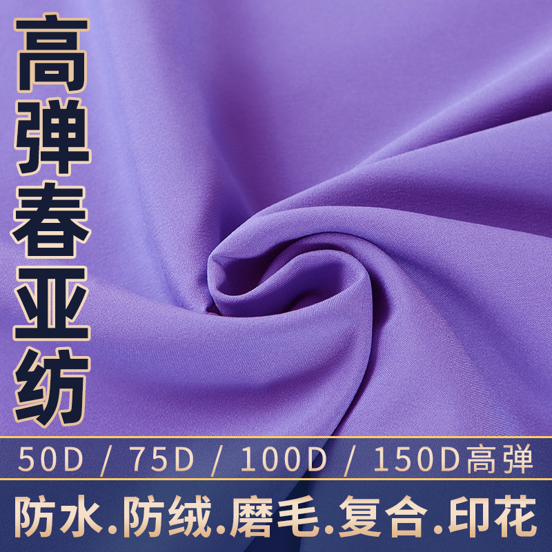 ポリエステル50d75d高弾春亜紡織生地の規格は緯弾機械弾の柔らかい偽弾があります。防水プリントができます。