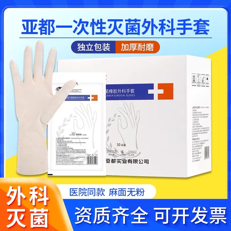亚都医用无菌外科手套一次性使用橡胶外科手套灭菌级医用麻面无粉