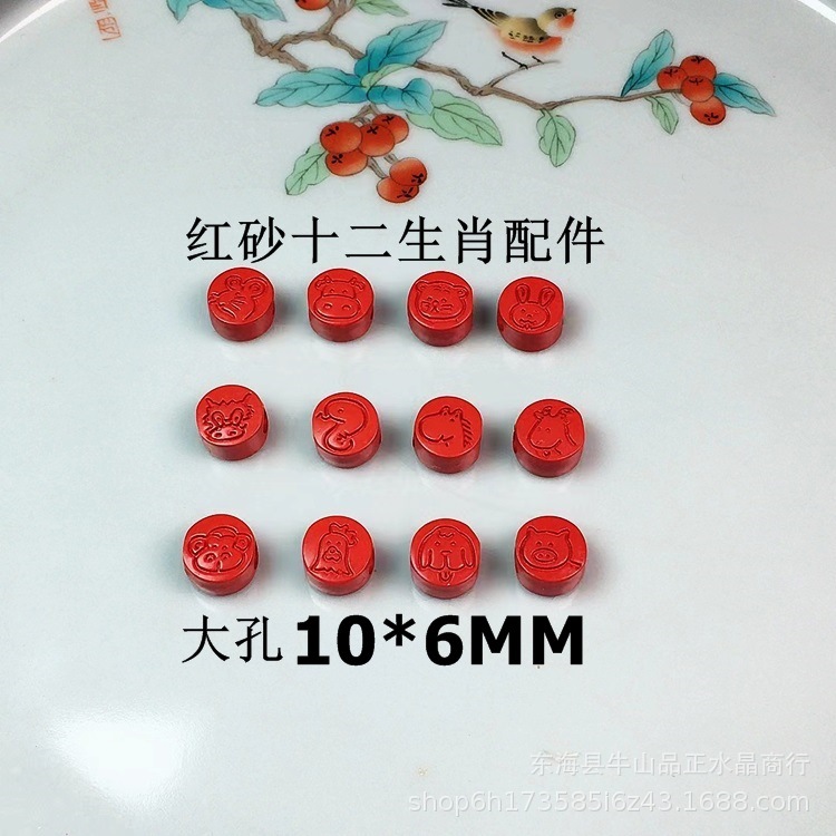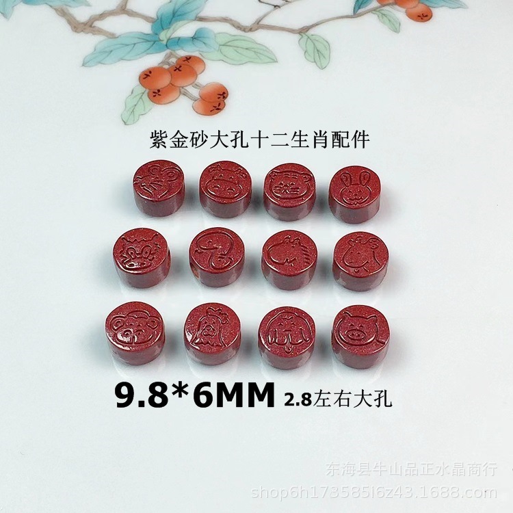 朱砂干支アクセサリー紫金砂DIY手編み大穴両面干支アクセサリー