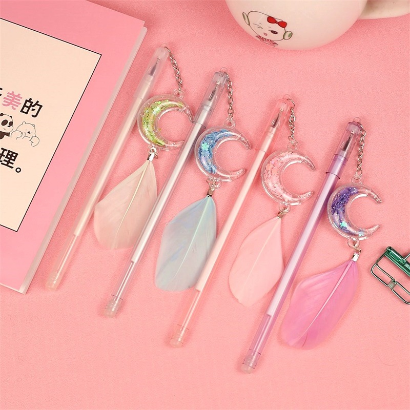 羽根ペン型ゲルインクペン 学生文具 カーボンペン オフィス試験用サインペン 黒インク 0.5mmペン芯
