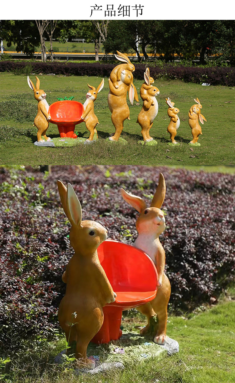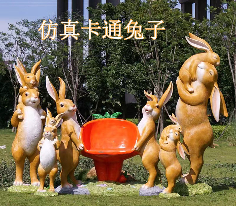かわいいシミュレーションのウサギの動物の彫刻の屋外の幼稚園の花園の庭園の景観の工事の装飾品のウサギの置物
