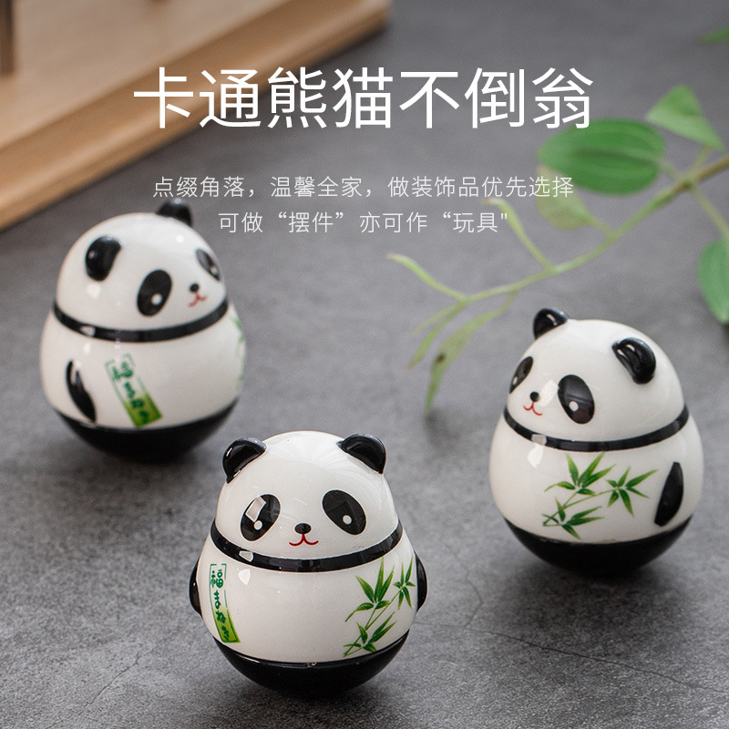 文创日式杂货熊猫不倒翁招财治愈解压陶瓷家居装饰工位桌面摆件