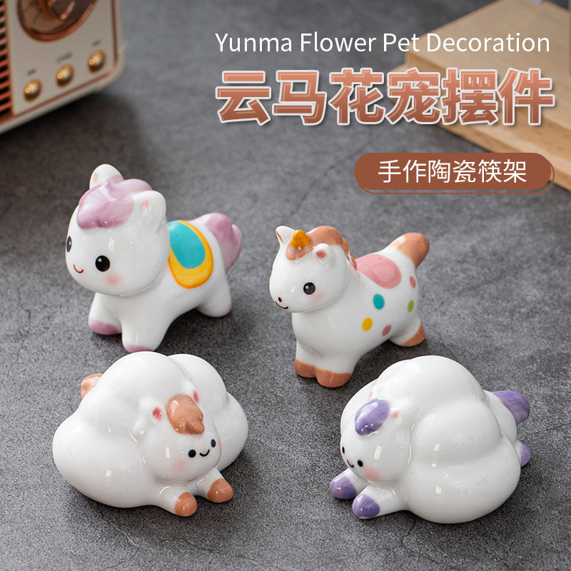 文创陶瓷筷架小马马年日式动物花宠茶宠可爱陶瓷餐桌工位摆件礼品