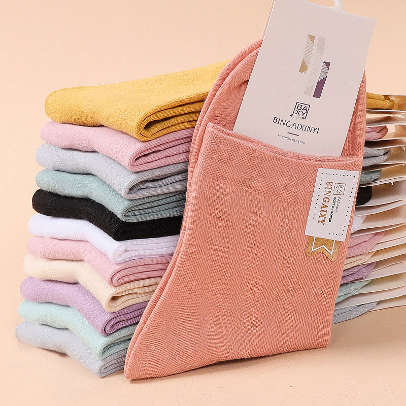 春夏の靴下の女性の中筒靴下の日本のキャンディー色の純色のストッキングの全綿の靴下のかわいい吸汗防臭の口の靴下