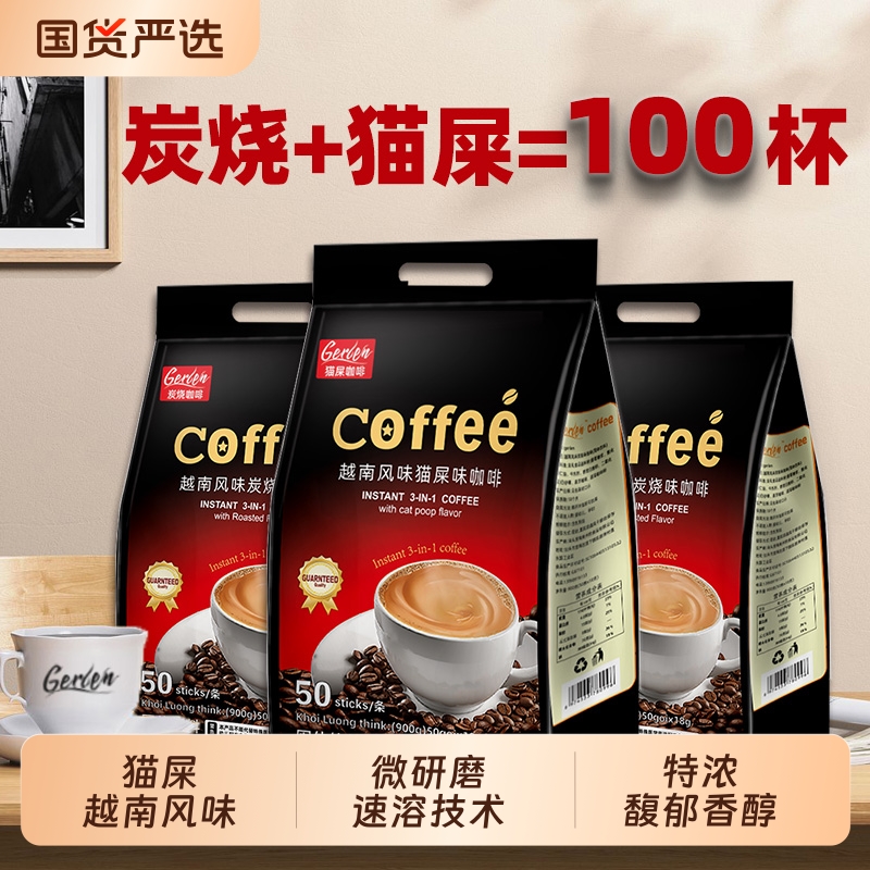 猫のうんこコーヒーインスタント3in1コーヒー粉末風味抖音快手上エコノミーセールスライブ配信メーカー直送卸売調合