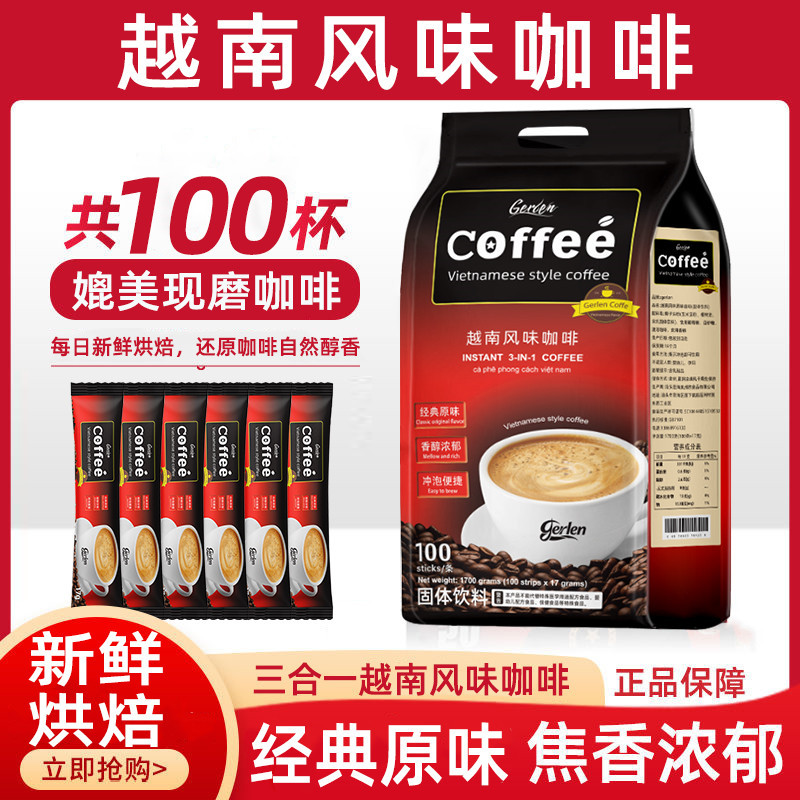 越南风味速溶咖啡大包装100条装三合一原味特浓咖啡1700g酒店商用