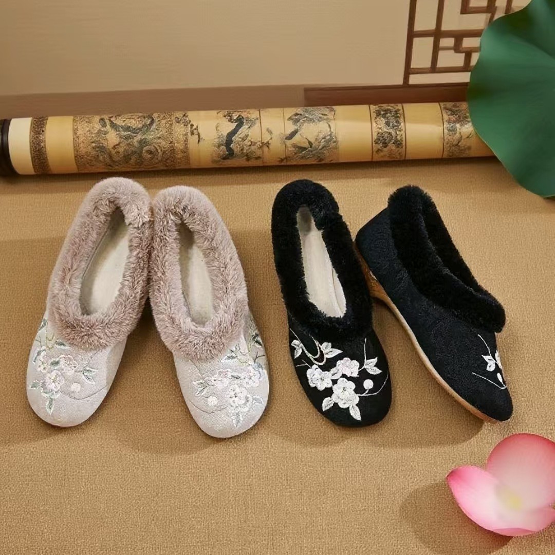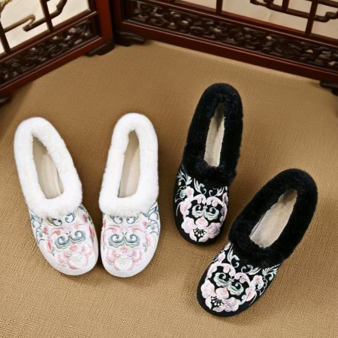 綿の靴の毛の口の靴の綿のスリッパの古風な刺繍の厚いベルベットの冬のタイプの民族の刺繍の布の靴の女性