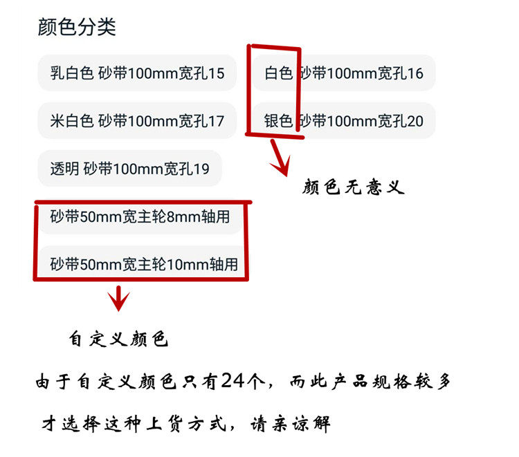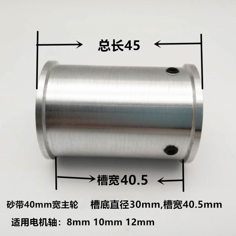 购买时先用卡尺测量电机轴径是几毫米,再选择和电机轴一样尺寸的轴孔,此砂带轮只适合光轴和D字轴使用,不适合螺纹轴和轴花和大面积刮面电机轴用。此砂带机主动轮也可适用于平槽皮带轮,本店内有售被动轮需要联系客服。皮带轮