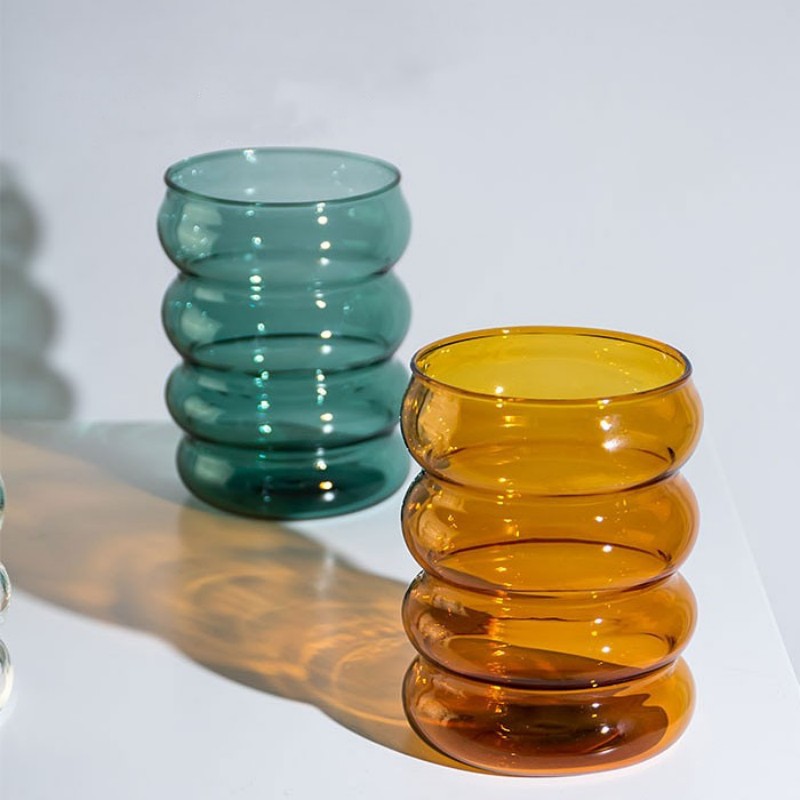 高ホウケイ酸ガラス単層サークルカップコーヒーミルクカップ家庭用かわいいキャタピラーカップカラフルなスパイラルガラスカップ