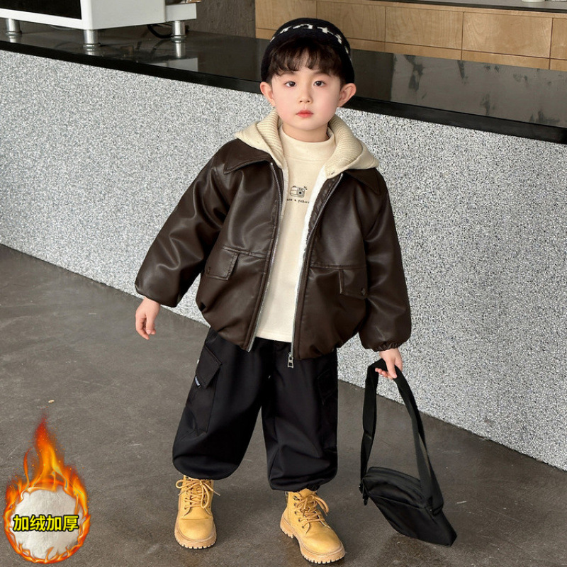 Xiaobanjia 2269 オープンステッチプラスベルベットレザージャケット