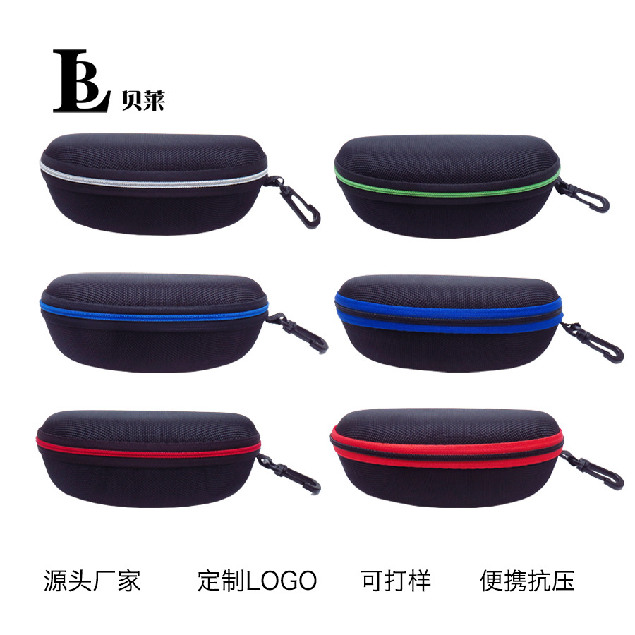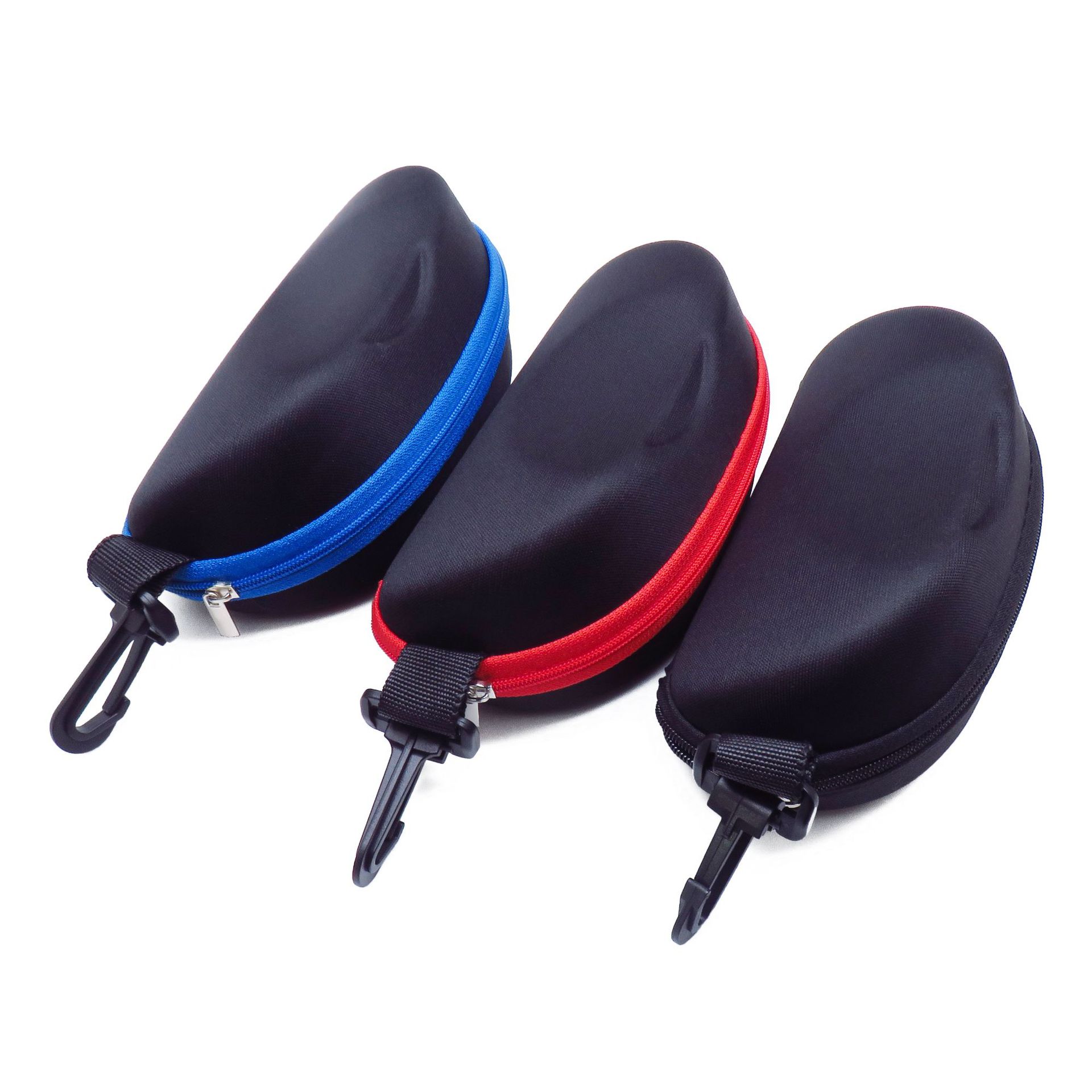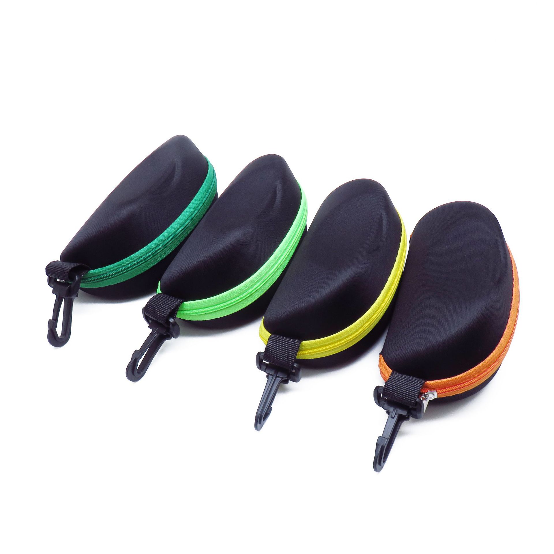 EVA耐圧・耐衝撃サングラスケース卸売、黒ジッパーバッグ、フック付きカラーサングラスケース、ロゴ印刷可能