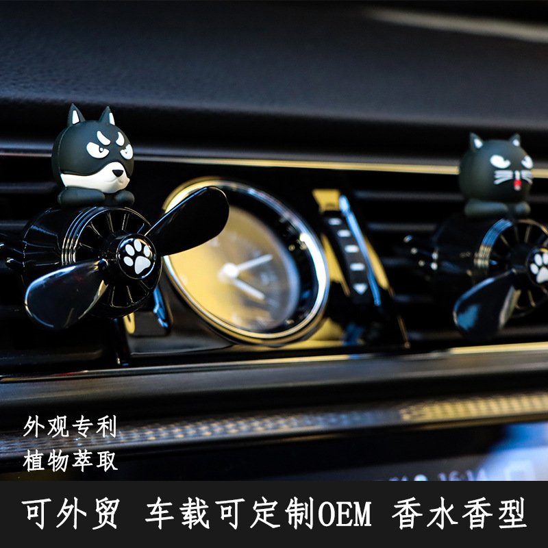ハスキー車のアロマ車用香水エアコンの吹き出し口に飾られた小さな飛行機ファン車のアロマ