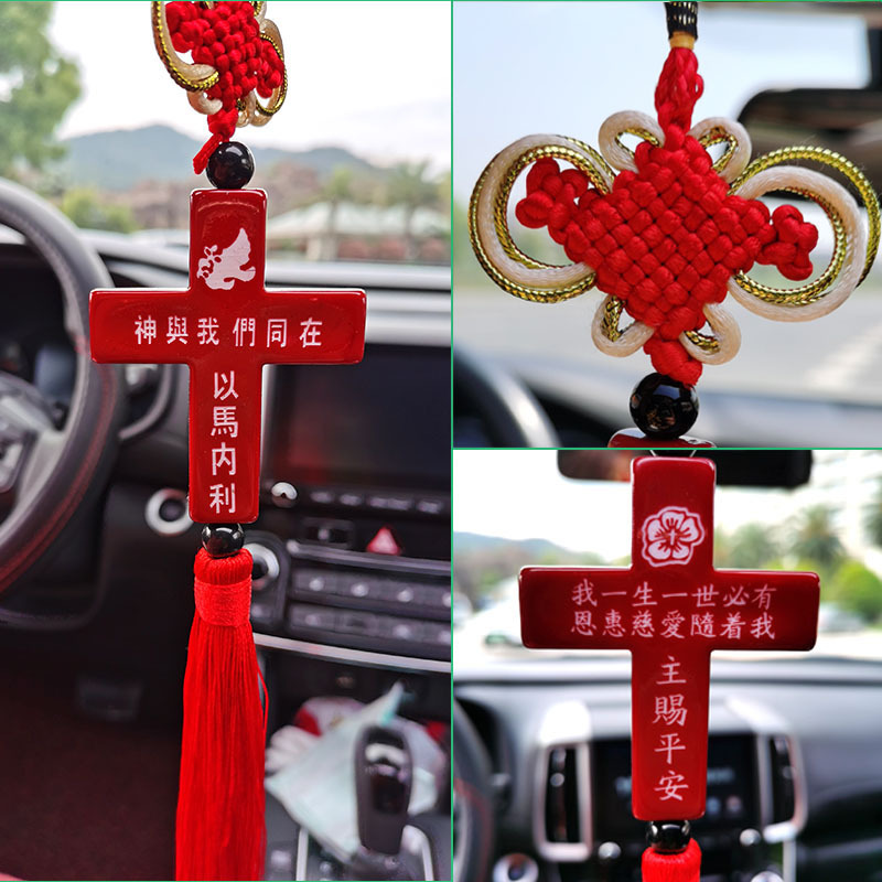 新款汽车十字架挂饰创意车载后视镜祝福平安合金属吊坠汽车装饰品