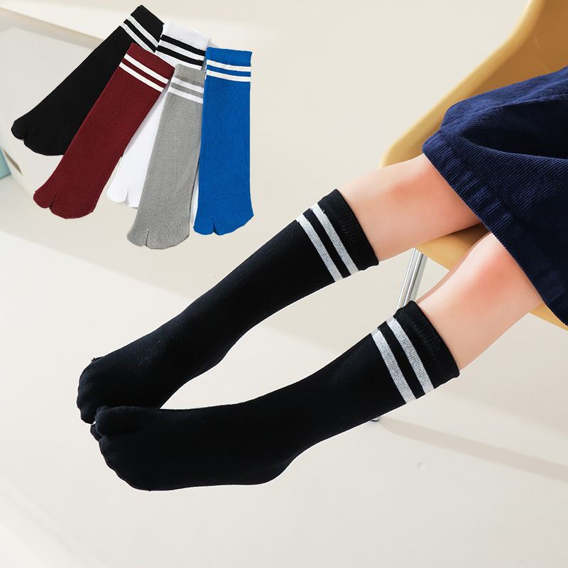 秋冬の女性の中筒の五指の靴下の彩の指の学院の風の2本のバーの快適な綿は汗の新商品の現物を吸います卸売りします。