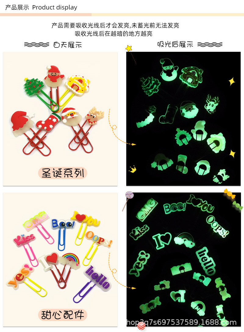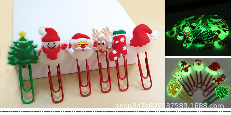 国境を越えた新しい蛍光漫画クリスマスPVCブックマークが入荷しました。カラフルで可愛いクリエイティブな文房具、ペーパークリップ。